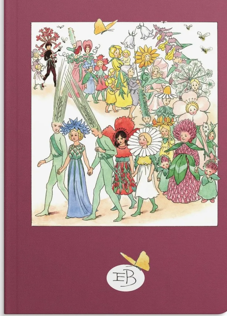 Anteckningsbok A5 Elsa Beskow Blomsterfesten vinröd