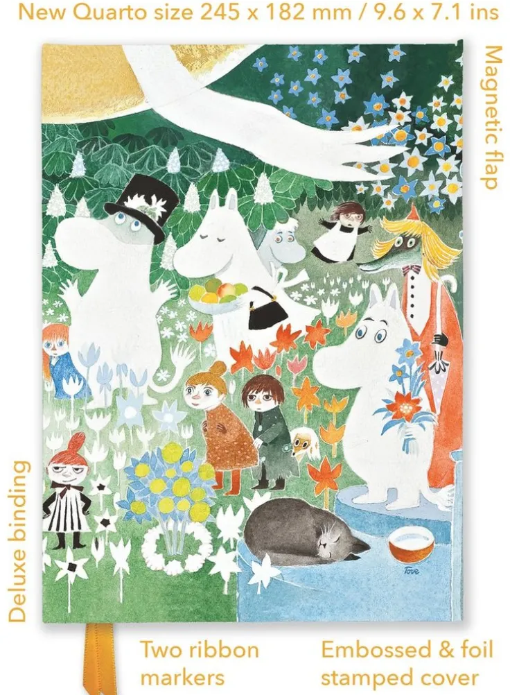 Inbunden anteckningsbok i större och bredare format. Omslaget är i vackert präglat har folierade detaljer. Omslaget är i hard cover och ryggen är fyrkantig. Två märkband i matchande färg gör att du lätt hittar bland dina anteckningar. Innehåller 128 crème färgade och linjerade sidor i 120g. Tove Jansson var en finlandssvensk författare och konstnär som skapade Muminfamiljen och deras vänner. Hon började måla Mumintrollen redan 1935, och hennes sista Muminbok publicerades 1970. Hennes berättelser lever dock vidare och fortsätter att uppskattas av många generationer.
