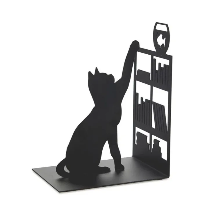 Bokstöd Fiskande Katt i metall. Perfekt för att hålla ordning på böcker på en hylla eller ett skrivbord och förhindra att de faller ner. Dess originella design kommer att ge dina utrymmen en rolig touch. Med silikon i botten för att undvika glid.