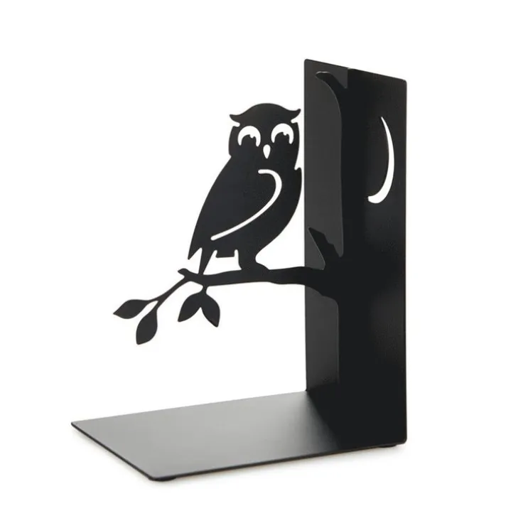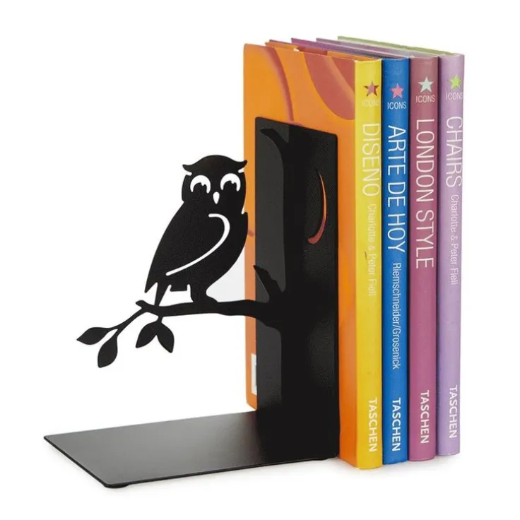 Bokstöd Uggla i metall. Perfekt för att hålla ordning på böcker på en hylla eller ett skrivbord och förhindra att de faller ner. Dess originella design kommer att ge dina utrymmen en rolig touch. Med silikon i botten för att undvika glid.