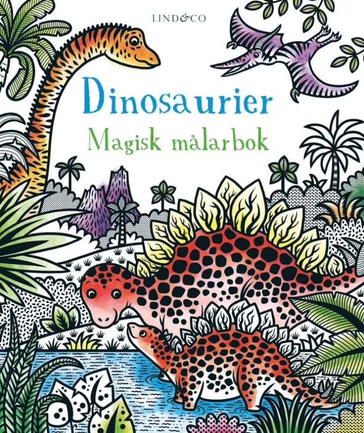 Förvandla de svartvita illustrationerna av dinosaurier i denna magiska målarbok till fantastiska, färgsprakande scener, det enda som behövs är vatten! Doppa den medföljande penseln i vatten, stryk den över bilderna och se hur färgerna framträder, som genom magi! Boken innehåller femton illustrationer av dinosaurier i olika miljöer.