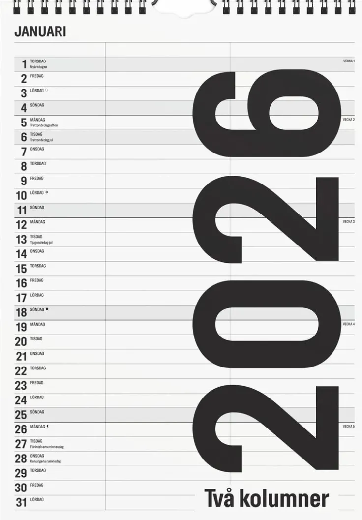 Familjekalender 2026 Black and white 2 kolumner