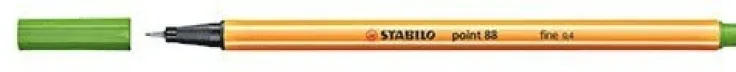STABILO point 88 fineliner. Det är den enda finelinern som finns i så många som 47 olika färger. Skrivspetsen är metallomsluten för en längre livslängd för pennan. Med STABILO point 88 skrivs tunna fina linjer utan risk för att färgen smetas ut. Pennan är sexkantigt utformad med en lång ”cap off” tid och ventilerad huv och har en pennspets på 0,4 mm.