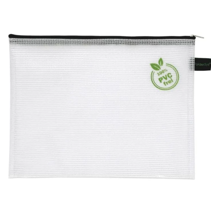 Fantastiskt tåligt fodral i PVC-fri transparent plast vilket underlättar sökandet efter rätt sak. Mjukt och följsamt. Svart dragkedja. Användbart till det mesta, , till dina pennor, penslar och övrigt konstnärsmaterial, för stranden, i väskan, i gympapåsen eller på kontoret. Storlek B5, 295x235mm.