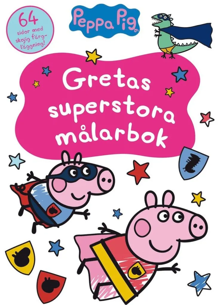 Följ med Greta och hennes vänner i den här superstora målarboken! Åk ut i rymden, ha kalas och njut av en sångstund med Greta och Georg. Börja färglägga!