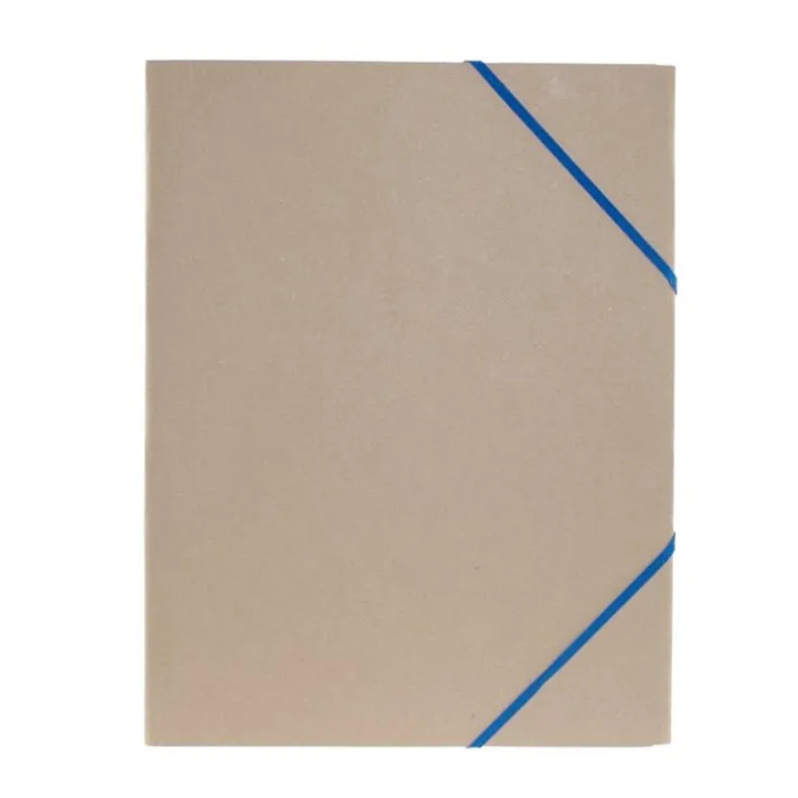 3-fliks kraftfärgad gummisnoddsmapp av 100% återvunnet papper! Här med blåa band.