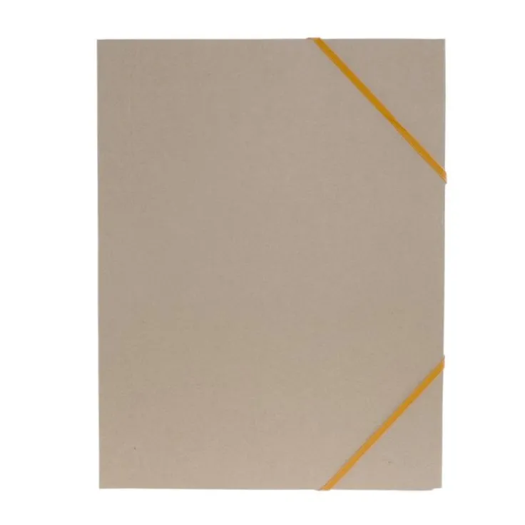 3-fliks kraftfärgad gummisnoddsmapp av 100% återvunnet papper! Här med orangea band.