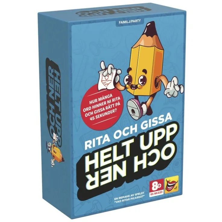 Rita och gissa rätt på så många ord som möjligt på 45 sekunder. Den som ritar måste rita upp och ner!