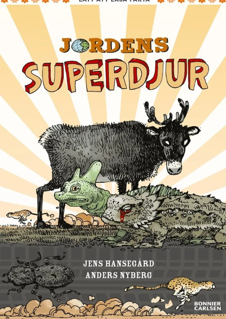 Läs om djur med fantastiska superkrafter! Vad sägs om den lilla järnpansarbaggen som kan bli överkörd av en lastbil utan att den bryr sig, paddleguanen som kan skjuta ut giftigt blod ur ögonen, alpseglaren som kan sova och flyga samtidigt eller dubbelkamsbasilisken som kan springa på vattnet som ingenting! Här finns också odödliga maneter, dyngbaggar, draktusenfotingar, pistolräkor, fingerdjur och myrkottar, ja, allt man kan önska sig. Jens Hansegård vet hur man skriver spännande och lättläst, och ingen kan som Anders Nyberg väcka intresse med sina illustrationer. Garanterat kittlande läsning för alla faktatörstande unga!