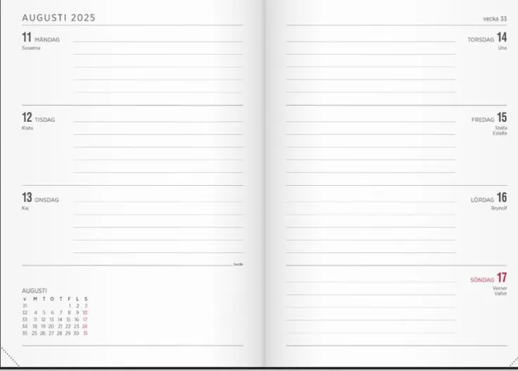 - Layout: Vecka/uppslag