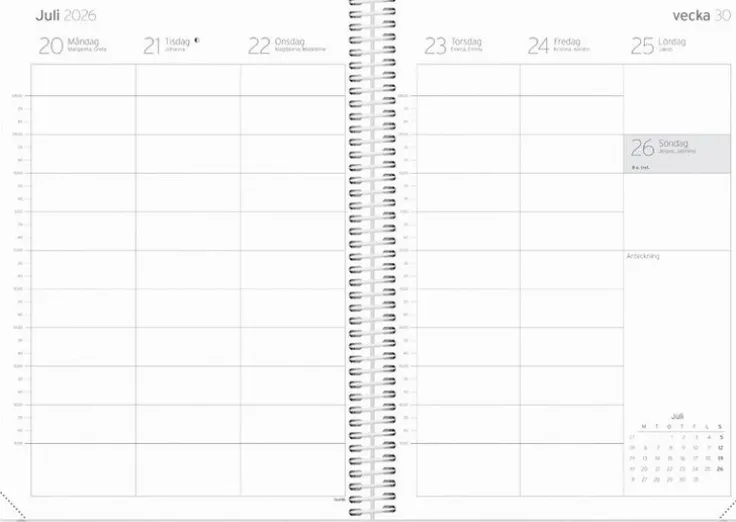 En komplett lärarkalender i ett större format, så att du får gott om plats att planera! Veckouppslaget har timindelning kl 8-17 måndag till fredag, men innehåller även plats för lite helgplanering och övriga anteckningar. Utöver det så finner du bland annat schema, kontaktlista, elevförteckning, och projektplan. Kalendern ger dig även möjlighet till reflektion för att se över utmaningar och framgångar i din vardag som lärare.Kalendern har två olika framsidor att byta mellan eller om du vill använda ditt eget motiv.Kalender 25/26 från Burde. Format: B5 (176×250 mm). Layout: Stående. Vecka/uppslag. Timindelning 8-17. Kalendarium: 2025-06-02 – 2026-08-30. Omslag: PP-plast. Spiralbunden. Detaljer: Gummiband. Plastfickor. Innehåll: Kontaktlista, Anteckningssidor, Schema, Elevfrånvaro, Elevförteckning, Årsplaner. Antal sidor: 208. Miljöinformation: FSC®.