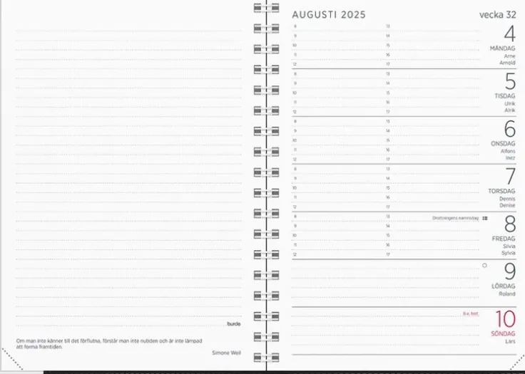 - Layout: Vecka/Uppslag