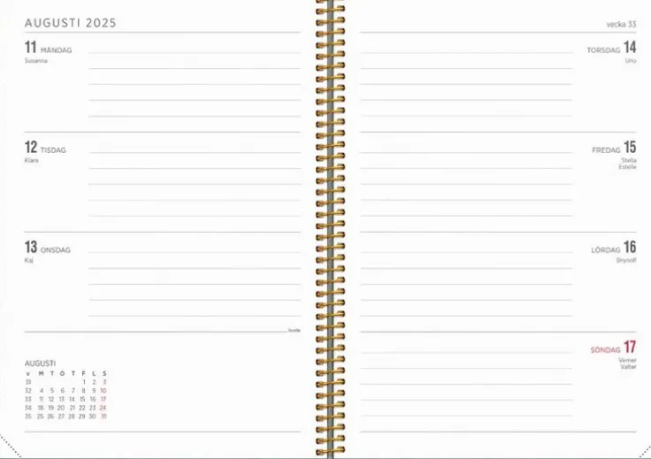 - Layout: Vecka/Uppslag
