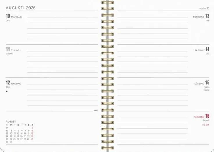 Kalender 2026 med ett härligt Morris blommönster. Format: A5. Layout: Liggande. Vecka/uppslag. Kalendarium: 2025-12-08 – 2027-01-03. Omslag: Kartong med struktur. Spiralbunden. Antal sidor: 144. Miljöinformation: FSC®.