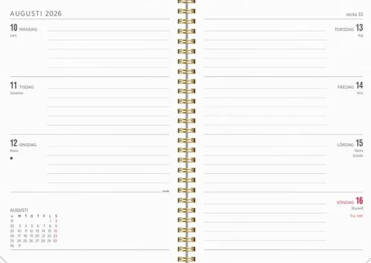 - Layout: Vecka/uppslag