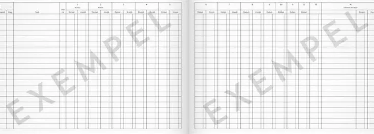 Kassabok A4L. 31 uppslag. 14 kolumner. 9 dubbel- och 5 enkelkolumner. Häftad. FSC®. Format: 297×210 mm.