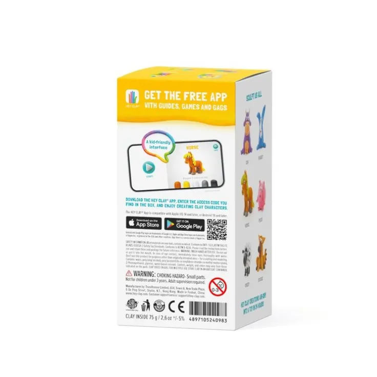 Ett riktigt kul och kreativt set med lufttorkande lera för att skapa en rolig häst av som du sen kan leka med. Detta set innehåller 5 burkar lätt, mjuk, elastisk och lufttorkande lera i klara livfulla färger som går att blanda ihop till nya nyanser och du kan få hjälp i skapandet av en gratis barnvänlig app med interaktiva video-guider som har enkla steg-för-steg instruktioner (på engelska) för hur man skulpterar många olika karaktärer. Du låser upp beskrivningen för hästen med en kod som finns inuti paketet. Låt figuren lufttorka i 24 timmar så kan du sen leka med den precis som en leksak eller dela bilder på din skapelse med dina vänner. När du har fått kläm på de enkla grundläggande teknikerna får du säkert inspiration till att skapa dina helt egna figurer eller scener. Förvara den lera som inte används i lufttäta förpackningar så torkar den inte ut. Innehåll: 5 burkar lufttorkande lera (totalt ca 75 g lera i 5 färger) samt ett informationsblad med bilder på djuret, de olika stegen som krävs för att skulptera djuret, en länk till där ni kan hämta appen och koden som låser upp appens guide för hur man skapar hästen.