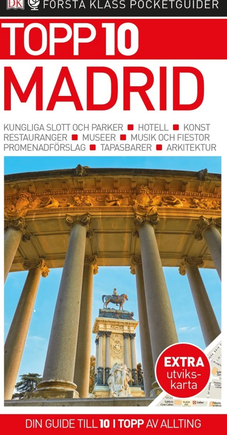 Oavsett om du reser första klass eller med en liten reskassa, tar guiden dig raka vägen till det bästa som Madrid har att erbjuda. Museo del Prado, Palacio Real och mycket mycket mer. Upptäck museerna och gallerierna, barnens favoriter eller de stora parkerna och Bernabéustadion, Madrids stora fotbollsarena. Dussintals topplistor – från de okända gömda skatterna, till festivaler, sevärdheter, hotell och affärer – ger all den expertkunskap som du som besökare kan behöva. Listan över saker man bör undvika sparar både tid och pengar. Du hittar snabbt rätt med hjälp av de detaljerade utvikskartorna och de många mindre kartorna inne i boken. Vad du än söker – här är din guide till 10 i topp av allting. Extra utvikskarta ingår!