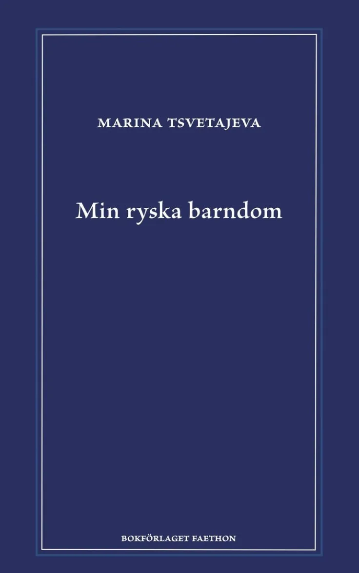 Marina Tsvetajeva (1892-1941) var en rysk poet och författare. Hennes texter om sitt tidiga liv i Min ryska barndom är en av de klassiska barndomsskildringarna. De vittnar inte bara om den stämning som rådde kring sekelskiftet utan fångar också tidens atmosfär sett genom ett barns ögon samtidigt som Tsvetajeva här visar upp sina poetiska tekniker och tydligt artikulerar sitt konstnärliga credo. Tidigt står det klart att hon är född att bli poet och de språkliga lekarna genomsyrar hennes minnen som utmärks av både detaljskärpa och lekfullhet.