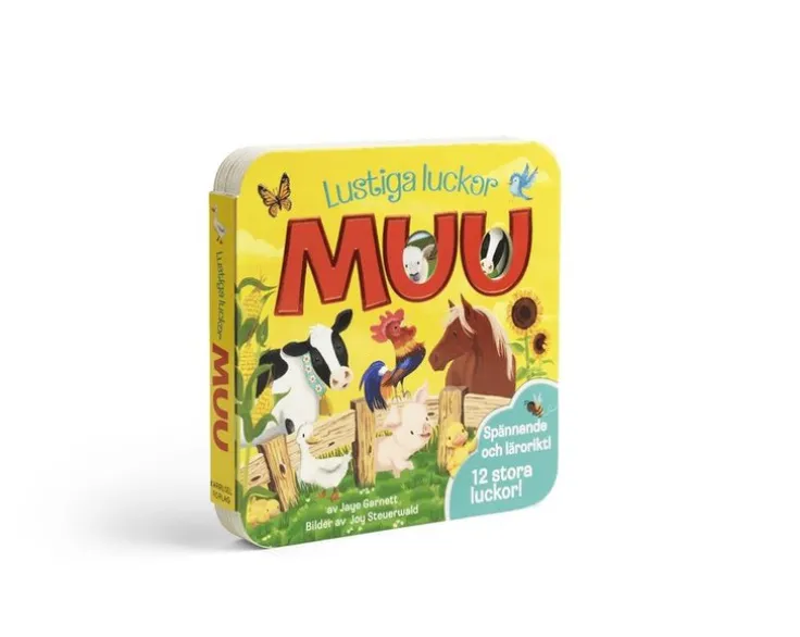 Lär dig om bondgårdens djur på ett roligt sätt – i boken finns 12 luckor med kikhål.