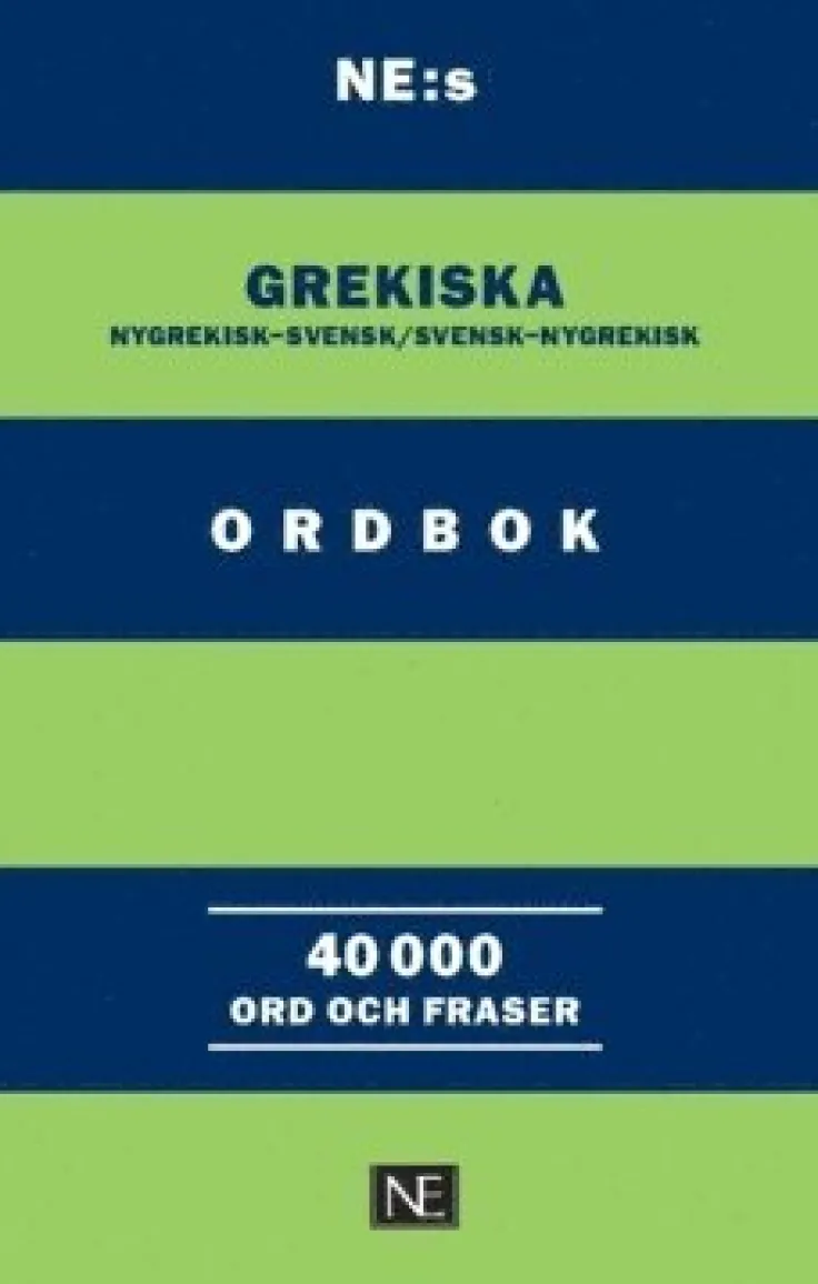 NE:s grekiska ordbok a?r en aktuell grekisk-svensk/svensk-grekisk ordbok med cirka 40 000 ord och fraser. Nygrekiska a?r det spra?kvetenskapligt korrekta namnet pa? det spra?k som talas i det moderna Grekland – men i dagligt tal brukar man sa?ga grekiska. Ordboken inneha?ller a?ven o?versikter o?ver grammatik och uttal i ba?de svenska och grekiska.