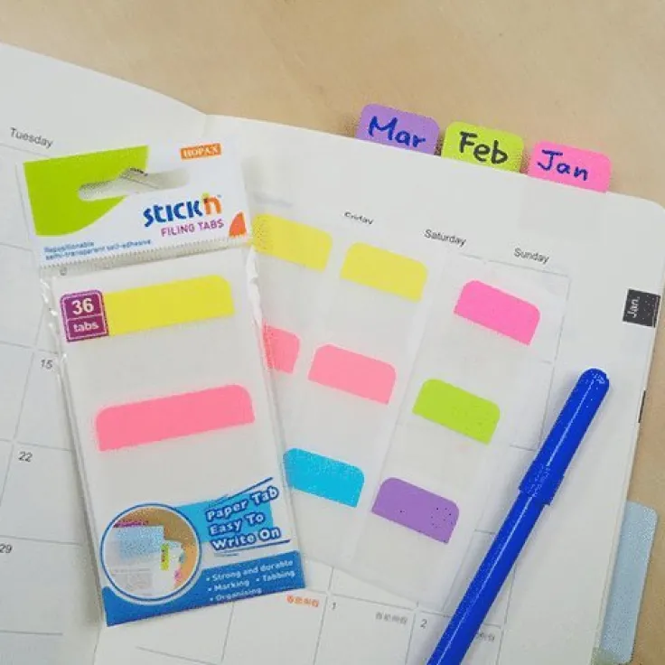 Färgstarka stora indexflikar som hjälper till att organisera och hålla koll på det mesta. Skrivytan är gjort av papp vilket betyder att du kan skriva med vilken penna som helst utan att vara rädd för att bläcket ska smetas ut. Fästytan är extra stabil och sitter perfekt, så länge du vill. Riktigt bra flikar i böcker du bläddrar ofta i som ex. receptböcker. 36 flikar.