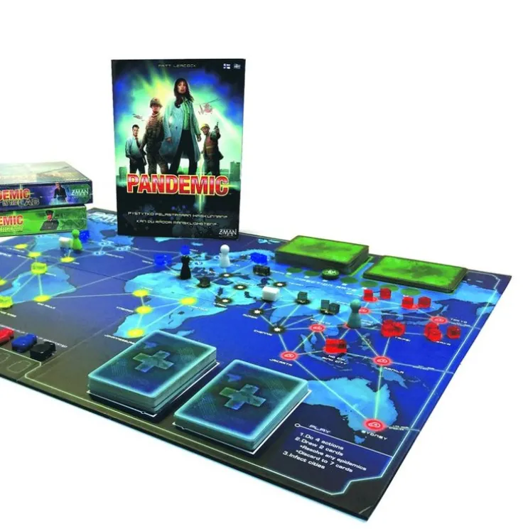 Pandemic är ett spel för hela familjen, där man spelar tillsammans mot spelet. Varje spelare får var sin roll och ska resa runt i världen och bekämpa sjukdomar. Det finns många sätt att förlora spelet på men bara ett sätt att vinna på. Pandemic är roligt för att alla spelar i samma lag. Dessutom kan man justera svårighetsgraden om man tycker att spelet är för svårt eller enkelt. Reglerna är enkla och kan läras på en kvart. Det finns 3 expansioner till Pandemic.
