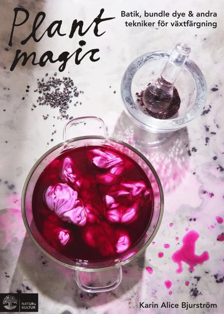IPlant magicblandas traditionell växtfärgning med modernare tekniker som batik, bundle dye och botaniskt tryck. Du lär dig att skapa färgstarka mönster på tyg med hjälp av naturliga pigment. Experimentera med avkok och avtryck, kläm, doppa och ånga. Resultaten är vackra organiska mönster som kan likna allt från månlandskap och marmor till abstrakt batik eller en blomsteräng. Karin Alice Bjurström vill få oss att upptäcka hur lätt det är att få fram färg på egen hand. Hon uppmuntrar till att laborera, rätt eller fel existerar inte. Boken innehåller ett 20-tal färgrecept på olika plagg som t-shirt, kimono och scarf i brokiga kulörer och varierande mönster.