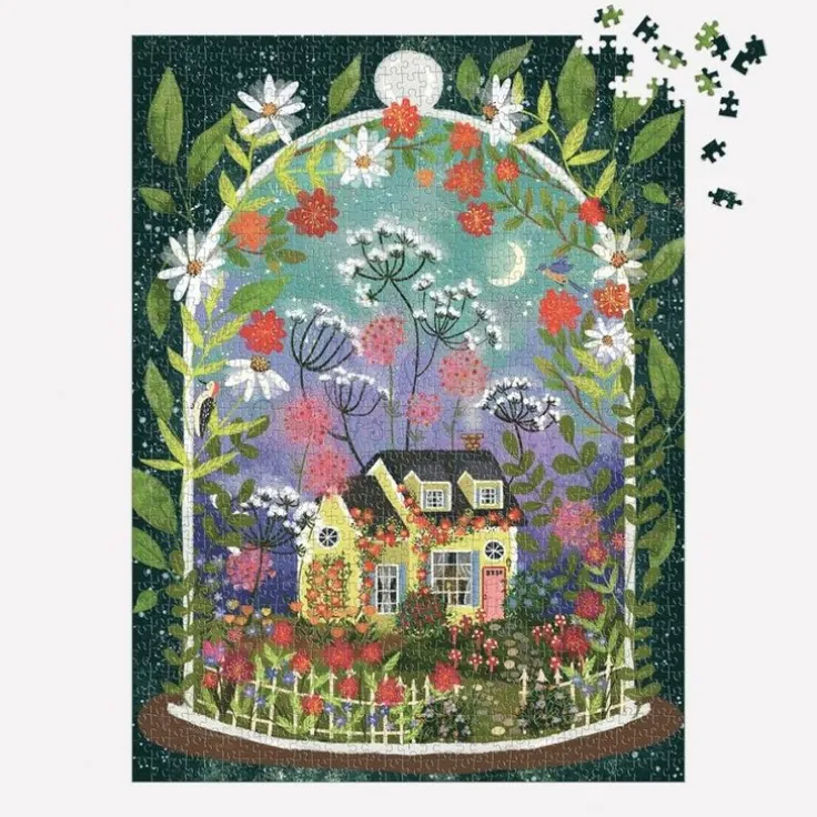 Pussel med 1000 bitar med ett charmigt motiv av en liten stuga inbäddad i ett terrarium fullt av liv och blomsterprakt. Här får du lägga ett pussel som bjuder på en magisk scen där färgstarka växter, svampar och prästkragar lyser upp omgivningen, vackert belysta av månskenet.Innehåller plansch med pusslets motiv.Praktiskt taget inget pusseldamm.Illustratör är Joy Laforme.Askens storlek är 210 x 286 x 51 mmPusslets storlek är 508 x 686 mmPusslets kartong består av 90 % återvunnet papper. Förpackningen består av 70 % återvunnet papper och är ansvarsfullt tillverkad av FSC-certifierat papper. Tryckt med giftfria färger.
