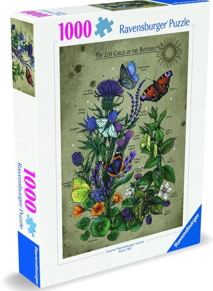 Lifecircle Butterfly 1000p. Upptäck den perfekta passformen! Ravensburger har något för alla vuxna, pussel från 500 bitar till världens största med 40 320 bitar – och allt däremellan! Njut av Ravensburger-kvalitet med denna familjevänliga aktivitet! Från 14 år.Kontakt:Ravensburger Verlag GmbHP.O. Box 2460, 88194 Ravensburghttps://www.ravensburger.com