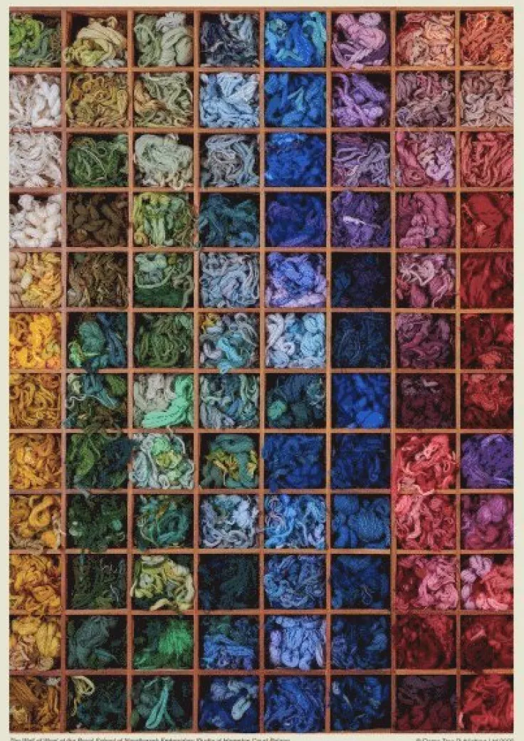 Ett 1000-bitars pussel med ett färgstarkt fotografi av ullnystan arrangerade efter deras färgnyanser i fack på en vägg. Bilden är tagen på Royal School of Needlework i London som grundades 1872 och som än idag erbjuder kurser i brodyr. Skolan är världskänd för sin undervisningskonst, konservering och restaurering av antika broderade textilier.Asken innehåller en plansch med pusslets bild. Pusslet ligger i en fin och stadig ask med blank yta som kan återanvändas till presenter, förvaring, mm.Pusselmotivets mått: 74 x 51 cmAskens mått: 25 x 25 x 5 cm