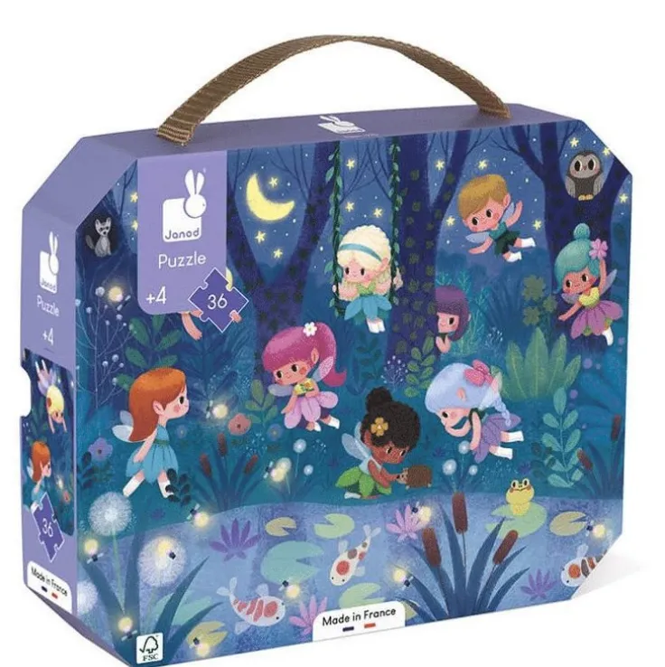 Upptäck denna lilla sagovärld! Barn från 4 års ålder kommer att bli fascinerade av denna magiska scen. Pusslet mäter 50 x 40 cm när det är klart. Förvaringsboxen gör pusselbitarna lätta att transportera tack vare tyghandtaget. Innehåller en affisch som fungerar som förlaga. Antal bitar: 36. Pappmaterialet i denna produkt är återvunnet. Tillverkad i Frankrike. Ålder: 4+