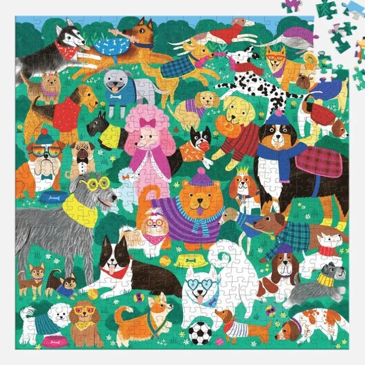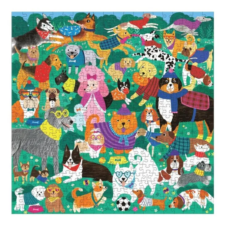 Ett 500-bitars pussel med motiv av en livlig hundpark med hundar av alla sorter! Många roliga detaljer att upptäcka under pusselläggandets gång. Perfekt för familjer som älskar djur och att tillbringa tid tillsammans. Illustrerat av Rebecca Jones. Pusslet är förpackat i en stadig ask och en affisch med pusselmotivet ligger med. Fina släta pusselbitar utan pusseldamm. Det färdiga pusslets storlek är 508 x 508 mm