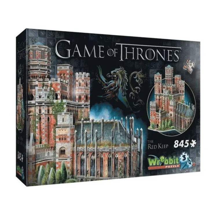 Ett 845 bitars 3D-pussel som föreställer det ståtliga slottet The Red Keep från serien Game of Thrones. Bitarna är tillverkade av tunn kartong med baksida av skumplast och de är 6 mm tjocka. Det uppbyggda slottets storlek är 42 x 33 x 39 cm. Förutom pusselbitarna innehåller förpackningen också 13 kartongstöd för pusslet. I Game of Thrones-temat finns också slottet Winterfell med 910 bitar. 14+