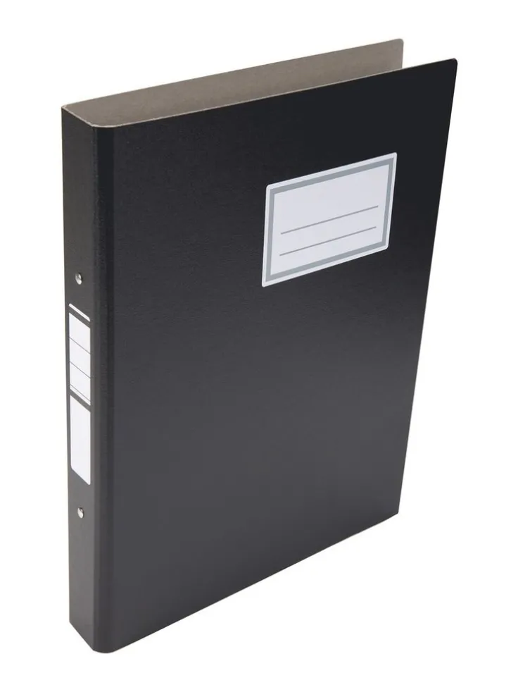 Med 29 mm triomekanism helt i metall. Fast etikett på rygg och framsida. A4, svart.