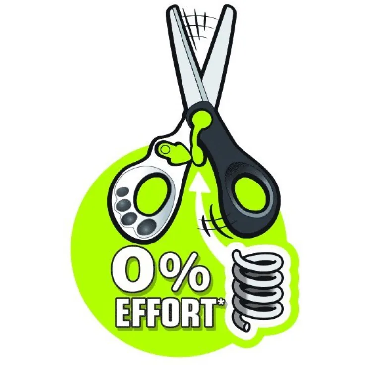 Smart fjädringsfunktion som öppnar saxen automatiskt efter varje klipp. Idealisk för de lite yngre barnen. Trubbig spets i rostfritt stål. Längd 13 cm.