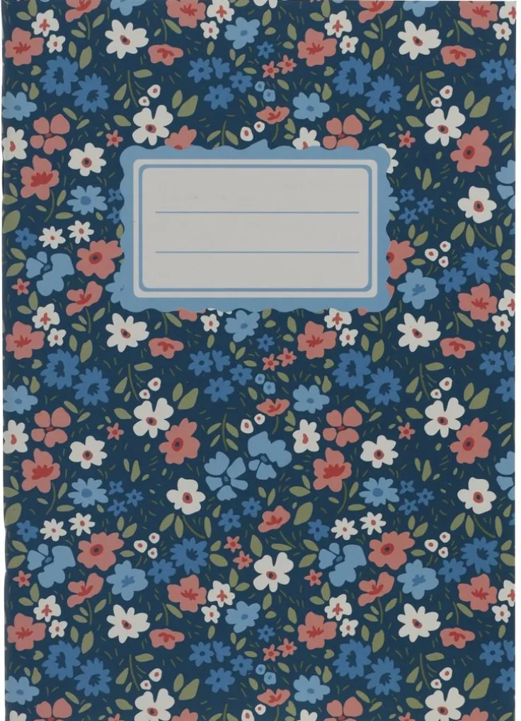 Skrivhäfte A5 linjerad småblom blå