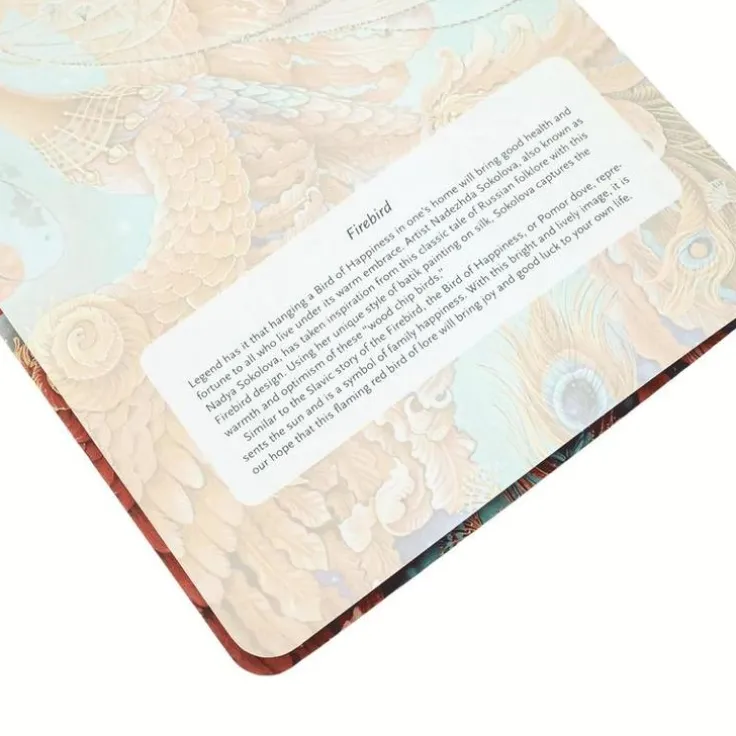 Birds of Happiness. Legend has it that hanging a Bird of Happiness in one’s home will bring health and happiness. Artist Nadezhda Sokolova has taken inspiration from this classic tale of Russian folklore with this Firebird design. Using her unique style of batik painting on silk, Sokolova captures the warmth and optimism of the legend. Cahier, Skrivhäfte. Storlek: 149*210*5 mm