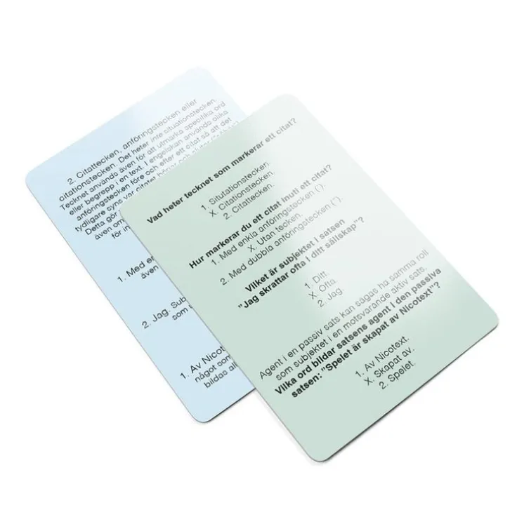 Stoltsera med dina grammatikkunskaper i detta spel med 380 kluriga och roliga språkfrågor. Nu kan du en gång för alla bevisa att du vet hur man använder semikolon och att du kan ge lämpliga hyperonymer till Lady Gaga. Plocka fram språkpolisen inom dig och utmana dina vänner i det svenska språket.