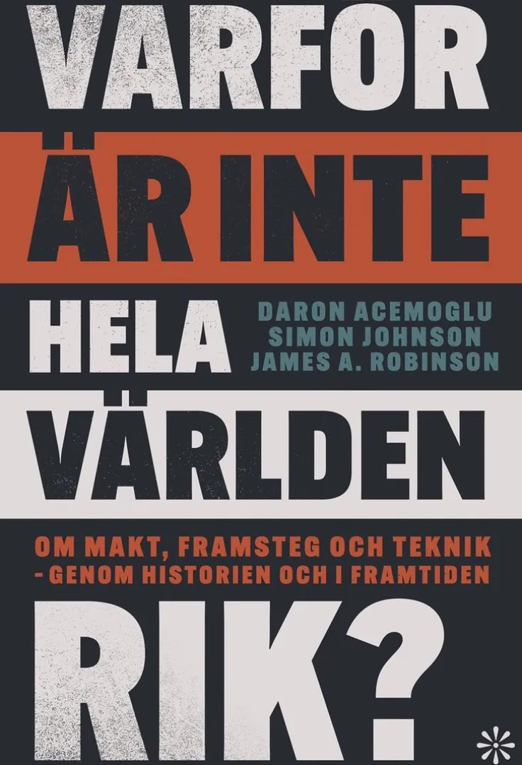 IVarför är inte hela världen rik?presenteras utdrag från tre banbrytande verk skrivna av Daron Acemoglu, James A. Robinson och Simon Johnson, mottagare av Sveriges Riksbanks pris i ekonomisk vetenskap till Alfred Nobels minne 2024. Här undersöks hur institutioner, makt och teknik formar världen.